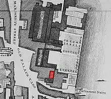 Ce est également le jour où les comploteurs doivent renouveler le bail de location de la maison de John Whynniard d'où leur tunnel est censé partir. Au début du XVIIe siècle, l'ancien palais royal de Westminster est un dédale de bâtiments amoncelés autour des salles médiévales abritant le Parlement et les différentes cours de justice royales. L'ancien palais est aisément accessible : des marchands, avocats et autres vivent et travaillent dans les logements, tavernes et commerces situés dans son enceinte. La maison de Whynniard est située perpendiculairement à la Chambre des lords, le long d'un passage appelé « place du Parlement » qui conduit aussi bien aux escaliers du Parlement qu'à la Tamise. Les caves, fréquentes dans les bâtiments de l'époque, servent à entreposer nourriture, bois et autres. La cave de la maison de Whynniard, au rez-de-chaussée, se trouve directement sous le premier étage de la Chambre des lords ; elle faisait peut-être partie de la cuisine du palais à l'époque médiévale. Abandonnée et sale, elle convient parfaitement aux projets des conspirateurs[62].