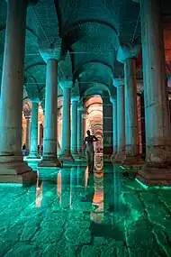 Toutefois, et comme le prouva le siège de Constantinople par les Avars en 636, l’approvisionnement par aqueduc pouvait facilement être interrompu. Aussi le réseau d’aqueducs fut complété entre la fin du IVe siècle et le début du VIIe siècle par trois énormes citernes à ciel ouvert (Aetius [421], Aspar [459] et Mocius [sous Athanase ?] d’une capacité totale de 900 000 m3, ainsi que de plus de quatre-vingts citernes couvertes dont la fameuse citerne-basilique et la citerne de Philoxenos (Binbirdirek) à l'ouest de l'hippodrome, d’une capacité approximative de 160 000 m3[89],[91].