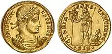 Depuis le IIIe siècle, Rome avait définitivement perdu son rôle de capitale et de résidence impériale. La tétrarchie instituée par Dioclétien (r. 284-305) pour mieux faire face aux envahisseurs avait multiplié les capitales[17]. Mais à la différence de ses prédécesseurs, Constantin Ier (r. 306-337), devenu seul empereur, voulut se doter d’une capitale unique et permanente[14]. Dès 324, l’empereur établit le plan de cette nouvelle ville, lui donnant une superficie de trois à quatre fois supérieure à celle de l'ancienne Byzance[18],[19]. Si la menue rivière Lykos n’égalait pas le Tibre, la Nouvelle Rome imitait en tout l’ancienne. Également bâtie sur sept collines, elle comptait aussi quatorze régions urbaines et était dotée d’un Capitole, d’un Forum, d’un Sénat, d’un hippodrome, de magasins, d’aqueducs, de citernes, d’eau courante et d’égouts. Dans les premiers temps, les sanctuaires païens (comme celui de la triade capitoline) côtoyaient les temples chrétiens (comme Sainte-Irène) et certains monuments, comme la colonne de Constantin, eurent un caractère syncrétique évident. Mais très vite, la ville adopta un caractère presque exclusivement chrétien[20],[21].