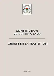 Elle est suspendue par les putschistes auteurs du coup d'État du 24 janvier 2022[1]. Le 31 janvier, un acte fondamental rétablit la Constitution et accorde à Damiba le titre de président[2].
