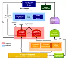 L'exécutif est divisé entre un président et le président du Conseil. Le président aurait été élu par l'Assemblée, disposant de pouvoirs honorifiques. Le président du Conseil est également élu par l'Assemblée, et doit faire approuver la composition et le programme de son Cabinet par un vote d'investiture.