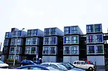 Depuis 2006 aux Pays-Bas, des artistes ont eu l'idée d'utiliser des conteneurs pour aménager d'abord des ateliers, puis des logements d'étudiants. Leur caractère empilable a permis à des architectes de développer le projet en les empilant sur plusieurs étages pour créer de véritables immeubles de cités universitaires. L'avantage est certainement moins le coût de revient, puisque, à confort égal, les aménagements de second œuvre sont identiques à ceux d'une construction en maçonnerie, que la rapidité d'une installation préfabriquée et autoporteuse, ainsi que le caractère rapidement démontable qui permet aux promoteurs de se dispenser de demander une autorisation de construire normale, comme s'il s'agissait d'un habitat de cantonnement[réf. nécessaire].