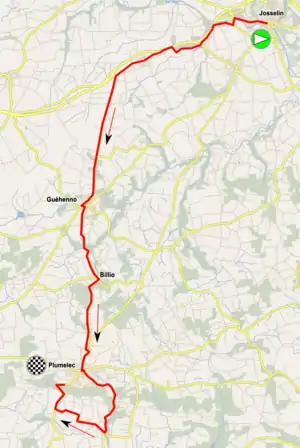 Le parcours s'élance de Josselin dans la rue du canal et se termine dans la côte de Cadoudal à Plumelec.