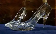 L'édition de 1697 des contes de Charles Perrault mentionne « la pantoufle de verre »[7], le titre complet du conte est Cendrillon ou la Petite Pantoufle de verre. Les objets insolites en verre sont une donnée récurrente dans le folklore : montagne de verre[8], pont de verre… et chaussures. Des chaussures dans une matière inhabituelle sont fréquentes dans les contes, comme les souliers de fer que le héros doit porter jusqu’à ce qu’ils soient usés ou brisés, ce qui image le fait qu’il doit marcher très longtemps. Les objets en verre ou en cristal, à la fois beaux et fragiles, ont pour fonction de révéler la légèreté et la délicatesse de la personne qui les utilise, à la différence d’une personne commune qui les cassera. On retrouve des pantoufles de verre ou cristal dans les contes catalans[9], écossais, irlandais. Dans Le Poirier aux poires d'or, du folkloriste breton François-Marie Luzel, il est question de trois pantoufles : d'or, d'argent et d'acier[10].