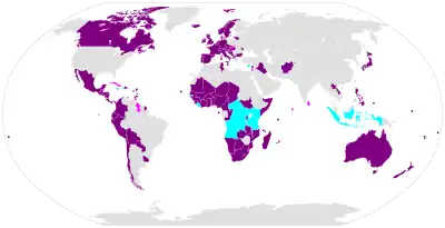 Les 111 États suivants ont souscrit à la Déclaration de Wellington et participé à la réunion de Dublin soutenant ainsi le projet de Convention[11] :