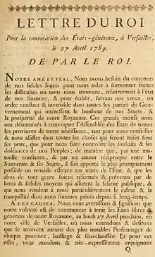 | Lettre du Roi, pour la convocation des États généraux à Versailles, du 24 janvier 1789 [1],[2],[3] | |