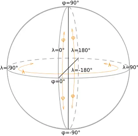 - La longitude est donc une mesure angulaire sur 360° par rapport à un méridien de référence, avec une étendue de -180° à +180°, ou respectivement de 180° ouest à 180° est.