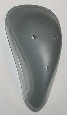 La coquille est de forme approximativement triangulaire, que les hommes peuvent porter lors de certains sports, notamment les sports de combat et les gardiens de but au handball, pour protéger leurs parties génitales des chocs, en effet, si un coup ou un choc est porté aux bourses non protégées par une coque, les testicules peuvent remonter ou se tordre, provoquant parfois dans les cas les plus graves, une torsion testiculaire ou une inflammation de l’épididyme et une douleur extrêmement forte nécessitant une intervention chirurgicale en urgence, d'où l'importance de porter une coquille en pratiquant certain sports[1]. Une coquille est parfois aussi portée par les danseurs de ballets.