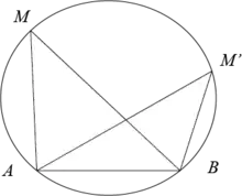 Étant donné une corde d'un cercle de centre , tous les angles pour des points du cercle situés du même côté de la corde ont même mesure, égale à .
