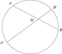 Étant donné un point à l'intérieur d'un cercle de centre et de rayon , toutes les cordes passant par fournissent un produit constant égal à . C'est l'opposé de la puissance de par rapport au cercle.