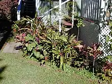 Cordyline fruticosa, également appelé Épinard hawaïen, Ti ou Auti en Polynésie Française, Nouvelle-Zélande, Tonga et Samoa, Cordyline à la Réunion et en Nouvelle-Calédonie, Langue de femme à la Réunion encore et Roseau des Indes ou Foulard en Guadeloupe et en Martinique, est une espèce d'arbuste aux feuilles persistantes de la famille des Agavacées selon la classification classique, des Asparagaceae, selon la classification phylogénétique.