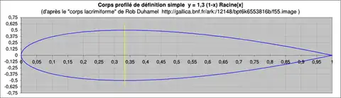 - Cette formule, qui place le maître couple au tiers de la longueur du corps, est une évolution des propositions de Rob Duhamel dans la revue L'Aérophile du 1er au , pp. 49-52 ; Duhamel les nomme « corps lacrimiformes » [lire en ligne].