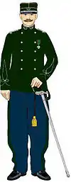 - Inspecteur : quatre galons aux manches et au "képy" ; dragonne à torsade filigrane,