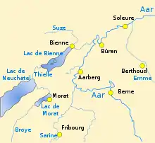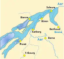 La « condition de Murgenthal » est une règle fixée dans le cadre de la correction des eaux du Jura. Elle stipule que le débit de l'Aar ne doit pas dépasser 850 m3/s à la station limnimétrique de Murgenthal[20] qui est située en aval de la confluence de l'Aar et de l'Emme.