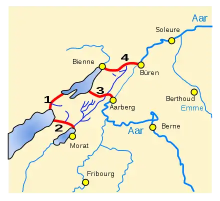 - catégorie 3 : détournement de l'Aar, soit dans le lac de Bienne, soit dans le lac de Neuchâtel, afin d'y déposer les débris qu'elle charrie.