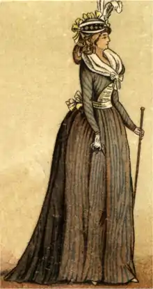 Pendant la plus grande partie du XVIIIe siècle les femmes portaient des robes flottantes. Elles avaient des jupes amplement drapées par-dessus des paniers. La silhouette des femmes qui les portaient semblait une grande cloche avec une très petite taille et de larges hanches. La plupart des robes étaient à taille basse, en pointe. Sous chaque robe les femmes mettaient un corps baleiné et des jupons. Les corsets étaient essentiels pour obtenir une petite taille et pour maintenir la forme des corsages, et les jupons aidaient à soutenir les paniers sous les jupes. Des plis Watteau couvraient les dos des manteaux et une traîne complétait ces robes élégantes[4]. En 1741, la silhouette des robes a été transformée. Les paniers ont pris de l'ampleur autour des hanches, les jupes se mettant à ressembler à des boîtes. Juste avant que cet engouement ne disparaisse, l’ampleur de certaines de ces robes atteignait quatre mètres[5]. Mais après cette brève lubie, les formes plus naturelles sont revenues.