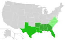 Les principaux États américains de la Cotton Belt sont la Géorgie, le Tennessee, l'Alabama, l'Arkansas et le Mississippi.