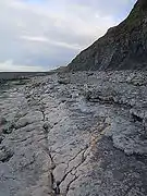 | −167 MA | Bathonien - Bajocien | ![]() | Les couches de passage affleurent au niveau de l'estran de Port-en-Bessin, Calvados au pied des falaises de Marnes de Port, Ces couches de passage sont constituées de 3 couches calcaires bioturbées séparées par des interlits argileux, de haut en bas:
