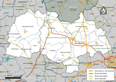 Située dans le nord du département d'Ille-et-Vilaine, la communauté de communes Couesnon Marches de Bretagne regroupe 15 communes et s'étend sur 397,5 km2[5].