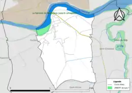 L'occupation des sols de la commune, telle qu'elle ressort de la base de données européenne d’occupation biophysique des sols Corine Land Cover (CLC), est marquée par l'importance des territoires agricoles (85,7 % en 2018), une proportion identique à celle de 1990 (85,7 %). La répartition détaillée en 2018 est la suivante : zones agricoles hétérogènes (47,7 %), terres arables (37,7 %), forêts (7,1 %), eaux continentales[Note 7] (7,1 %), prairies (0,3 %)[28]. L'évolution de l’occupation des sols de la commune et de ses infrastructures peut être observée sur les différentes représentations cartographiques du territoire : la carte de Cassini (XVIIIe siècle), la carte d'état-major (1820-1866) et les cartes ou photos aériennes de l'IGN pour la période actuelle (1950 à aujourd'hui)[Carte 2].