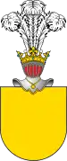 D'argent au lion de gueules, armé, lampassé et couronné d’azur, qui est d’Arménie (Cilicie). |