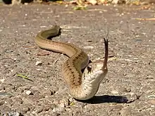 La couleuvre brune se nourrit de vers de terre et de limaces.