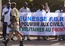 À l'appel du FUDR, un millier de personnes manifestent à Bamako devant la Bourse du travail le 26 mars, journée anniversaire de la chute de Moussa Traoré en 1991, renversé par un coup d’État militaire mené par Amadou Toumani Touré. Les manifestants réclament le départ des putschistes, le retour à l’ordre constitutionnel et la libération de l’ORTM[67],[68]. Les associations de défense des droits de l'Homme condamnent le coup d'État. Moctar Mariko, président de l'Association malienne des droits de l'homme (AMDH) appelle le CNRDR « à rendre le pouvoir aux civils et à garantir l'intégrité physique et morale de toutes les personnes arrêtées » et exige l'arrêt des arrestations et la libération des personnes arrêtées[69].