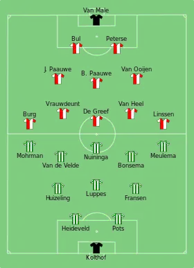 Les joueurs de Velocitas décident d'attaquer pour la première période des prolongations avec le vent et le soleil dans le dos[3]. Sur la première attaque des prolongations, Velocitas part à l'attaque et marque par l'intermédiaire de Van de Velde avec une frappe en lucarne, alors que Feijenoord n'a pas pu toucher le ballon[1]. Le match est arrêté à la suite de ce but et Velocitas remporte la coupe.