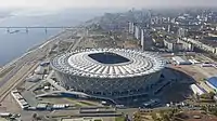 - Nijni Novgorod. Le stade de Nijni Novgorod (capacité lors de la Coupe du Monde : 45 000 spectateurs). Les travaux de construction ont été commencés en 2015 et terminés en décembre 2017[43].