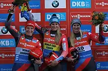 podium femmes au Altenberg - Hüfner, Geisenberger, Eitberger