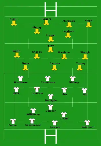 - Australie : 1 essai de Tuqiri (6e) et 4 pénalités de Flatley (47e, 61e, 80e, 97e)