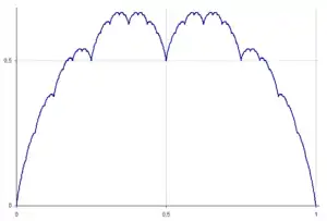 En mathématiques, la courbe du blanc-manger est une courbe fractale constructible par subdivision de son ensemble de définition. Elle est aussi connue comme la courbe de Takagi, d'après Teiji Takagi qui l'a décrite en 1901, ou comme la courbe de Takagi-Landsberg (en), une généralisation de la courbe. Le nom blanc-manger vient de sa ressemblance à l'entremets du même nom[1],[2]. C'est un cas particulier de courbe de De Rham (en).