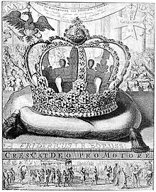 En 1712, l'écrivain et maître de cérémonie prussien Johann von Besser (1654-1729)[9] décrit la couronne dans son "Histoire du couronnement prussien" :