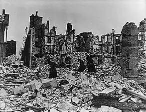 La cathédrale, avec les clochers de Saint-Nicolas et de l'hôtel de ville à droite et celui de Saint-Pierre à gauche. | |