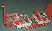 Les outils de couture incluent : aiguille à coudre, aiguille à tricoter, dé à coudre, épingle, épingle de sûreté, ciseaux à couture, machine à coudre, machine à tricoter, mètre ruban, surjeteuse, découseur ou découd-vite, porte épingles, pique-aiguille, étui à aiguilles, œuf à repriser, machine à couture, bobine colorée et craie pour tissu, règle à patchwork, perroquet de couture[3].