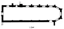 La première pierre est bénite en 1618 et l'église consacrée le par Mgr Johannes Pelcking O.F.M.Conv., en l'honneur de sainte Catherine. Trois autels Renaissance s'y trouvent, ornés de sculptures et de bas-reliefs de saints. Le maître-autel date de 1629.