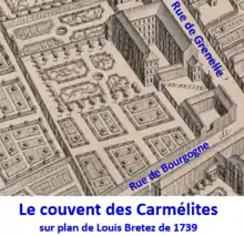 Fondé en 1664 par le Carmel de l'Incarnation de Paris, il est d'abord établi rue du Bouloi[1] près du Louvre, avant de s'installer rue de Grenelle en 1688.