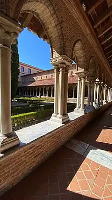 Le cloître est formé de quatre galeries construites entre 1306 et 1309. Les colonnades sont en marbre gris de Saint-Béat et les chapiteaux sont ornés de sculptures végétales. Elles soutiennent un toit en appentis reposant sur des arcs de briques, eux-mêmes reposant sur les chapiteaux.