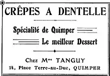 Ce produit est aussi connu sous le nom de Gavottes, marque de crêpes dentelle née à Quimper en 1920, dans le quartier de Locmaria[5].