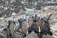 Un crampon est un équipement en alpinisme qui s'utilise par paire et comporte un nombre variable de pointes. Il se fixe sous la chaussure pour permettre la progression sur la neige et la glace[1]. Les crampons classiques conçus pour l'alpinisme ou la randonnée glaciaire sont peu adaptés à l'escalade glaciaire. Pour la pratique de la cascade de glace, des crampons spécifiques fournissant un meilleur cramponnage frontal sont recommandés. La plupart des crampons requièrent des chaussures « cramponnables », à semelle rigide pour une meilleure efficacité.