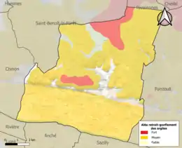 Le retrait-gonflement des sols argileux est susceptible d'engendrer des dommages importants aux bâtiments en cas d’alternance de périodes de sécheresse et de pluie. 89,4 % de la superficie communale est en aléa moyen ou fort (90,2 % au niveau départemental et 48,5 % au niveau national). Sur les 433 bâtiments dénombrés sur la commune en 2019, 256 sont en aléa moyen ou fort, soit 59 %, à comparer aux 91 % au niveau départemental et 54 % au niveau national. Une cartographie de l'exposition du territoire national au retrait gonflement des sols argileux est disponible sur le site du BRGM[27],[28].