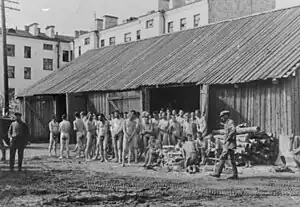 - Auschwitz : parmi les 15 000 prisonniers de guerre soviétiques déportés à Auschwitz pour le travail forcé, seulement 92 survivront. Ces prisonniers, à Auschwitz, subissent les premiers gazages, le , dans les caves du block 11 du camp principal. Ces mêmes prisonniers sont astreints, à Auschwitz comme ailleurs, aux tâches les plus dures[10]. Plus de 3 000 d'entre eux ont été abattus ou gazés immédiatement après leurs arrivée[22]. Sur les 10 000 prisonniers amenés à travailler en 1941, 9 000 sont morts au cours des cinq premiers mois. Les nazis expérimentèrent sur les prisonniers le Zyklon B (utilisé auparavant pour la fumigation) en gazant en quelque 600 prisonniers de guerre soviétiques et 250 prisonniers malades[23].