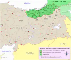 L'Union soviétique a souhaité que la frontière avec la Turquie à l'intérieur de la Région de l'Anatolie orientale soit normalisée à son bénéfice et celui des Républiques socialistes soviétiques arménienne et géorgienne. Le vice-premier ministre soviétique, Lavrenti Beria, a obtenu de Staline l'affirmation que le territoire turc au sud-ouest de la Géorgie avait été volé aux Géorgiens par les Turcs pendant la période ottomane. Si la théorie soutenu par Beria venait à être agréée par les turcs, l'influence soviétique sur la Mer Noire et le Moyen-Orient se verrait augmentée et dans le processus entraînerait la diminution de l'influence de l'Empire britannique dans la région. La querelle prend fin avec les réserves soviétiques sur le régime des détroits en mai 1953[11].