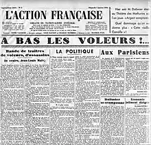 Dès le , L'Action française incite les parisiens à huer les députés en criant « à bas les voleurs ! »[8]. Le soir du , le mouvement monarchiste manifeste[9]. Son numéro du 9 janvier proclame : « Aujourd'hui, jour de rentrée du Parlement, à l'heure de sortie de vos ateliers et de vos bureaux, nous vous engageons à venir en foule autour du Palais Bourbon et aux cris de « À bas les voleurs ! À bas les assassins ! » exiger la justice et l'honneur. »[10]. 2 000 membres et sympathisants répondent à l'appel le premier soir. Le 11 janvier, l'arrestation de M. Aymard, directeur du journal La Liberté, et de M. Dubarry, directeur de La Volonté, jette 4 800 manifestants sur le pavé, où l'Action française est rejointe par les Jeunesses patriotes[11]. La pluie rebute les protestataires le 12 janvier, mais les démonstrations reprennent, aussi nombreuses, les 19 et 20 janvier. Les étudiants de l'Action française et les Camelots du roi scandent : « À bas Chautemps ! À bas les voleurs ! Stavisky au Panthéon ! ». Un nouveau débat sur l'affaire Stavisky le 23 janvier aboutit à un vote de confiance de la Chambre, majoritairement à gauche, en faveur du président du Conseil Camille Chautemps (367 voix contre 201)[12]. La Fédération nationale des contribuables descend à son tour dans la rue, mais à un autre point de rendez-vous que celui de l'Action française. Le 27 janvier, la manifestation se grossit de communistes, qui se réclament des soviets et chantent l'Internationale[13]. Le garde des Sceaux, Eugène Raynaldy, étant mouillé à son tour, se retire et le président du Conseil jette l'éponge le 28 janvier. La démission du cabinet Chautemps apaise les revendications. En trois semaines, il y a eu près de 2 000 arrestations et plusieurs centaines d'agents des forces de l'ordre ont été blessés. Maurice Pujo, de l'Action française, explique plus tard à la commission d'enquête : « On me dira qu'il est scandaleux d'arracher des bancs, de déraciner des arbres, de jeter sur la voie publique des grilles d'arbres. Il est certain que nous avons cherché le désordre dans la rue. Les manifestations n'ont pas d'autre but. »[14].