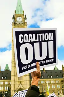 Le 1er décembre 2008, les trois partis d’opposition signent une entente de gouvernement qu’ils soumettent à la gouverneure générale. Par cette entente, l’opposition propose de former un Cabinet de 24 ministres et de répartir les ministères entre le Parti libéral (17) et le Nouveau Parti démocratique (7). Ce dernier s’engage à ne pas renverser ce gouvernement de coalition pendant 30 mois. Le Bloc québécois, dont le principal objectif est l'indépendance du Québec, n’a pas demandé de ministère, mais s’est engagé à soutenir le gouvernement de coalition pendant 18 mois.