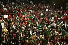 - (en) Naimat Khan, « Thousands gather at third opposition rally calling for Pakistan PM to go », sur arabnews.pk, (consulté le ).
