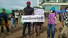 De multiples manifestations en violation du couvre-feu ont été signalées[98]. Sajith Premadasa, Sarath Fonseka et Patali Champika Ranawaka (en) ont mené une manifestation affiliée au SJB à Colombo où ils ont été bloqués par la police[99]. Une manifestation des étudiants de l'Université de Peradeniya à Kandy s'est dispersée après que la police a utilisé des canons à eau et des gaz lacrymogènes[100].