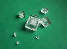 Un cristal est un solide dont les constituants (atomes, molécules ou ions) sont assemblés de manière régulière[1], par opposition au solide amorphe[1]. Par « régulier », on veut généralement dire qu'un même motif est répété à l'identique un grand nombre de fois selon un réseau régulier, la plus petite partie du réseau permettant de recomposer l'empilement étant appelée une « maille ».