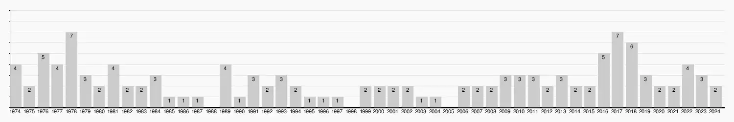Ci-dessous, les publications sont comptabilisées en nombre de titres par année. Il n'est pas tenu compte des rééditions.