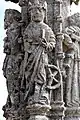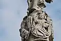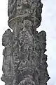 - Un fût rond sur lequel s'adossent des statuettes debout et des ornements ;